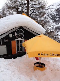 One of my favorite sights, mountainside. A Veuve Clicquot hut. Where are you Molly?